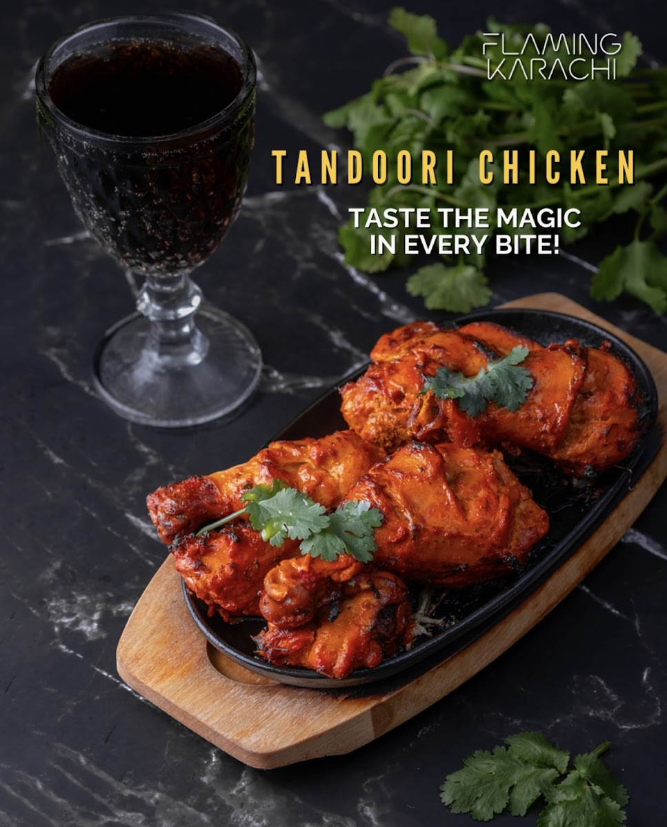 Flaming Karachi’s Tandoori Chicken is prepared in a traditional clay oven, giving it that signature smoky flavor and tender texture. Marinated in a mix of yogurt and spices, the chicken is grilled to perfection, making it a standout dish for meat lovers.